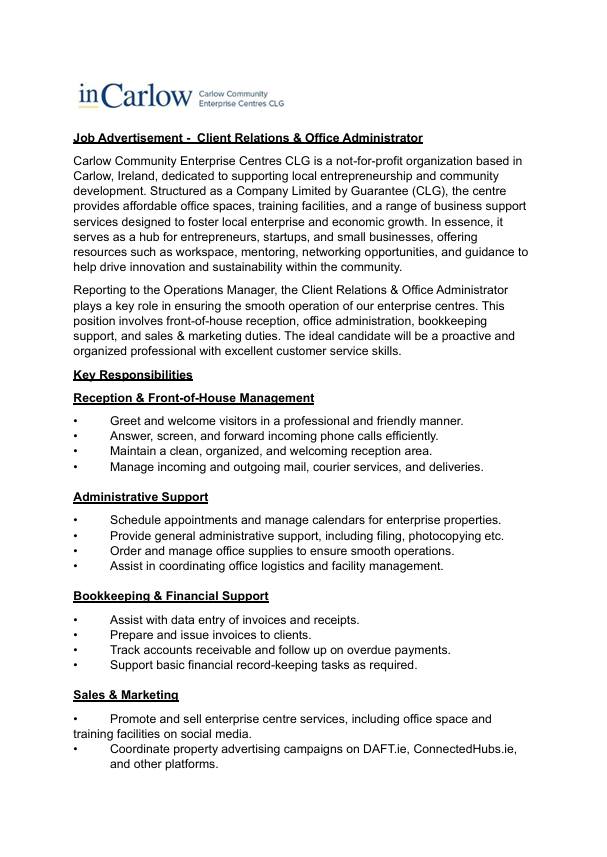 We have an exciting job opportunity: Client Relations & Office Administrator.