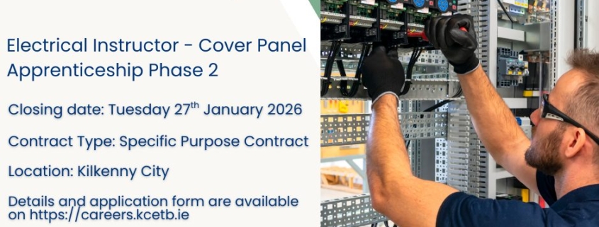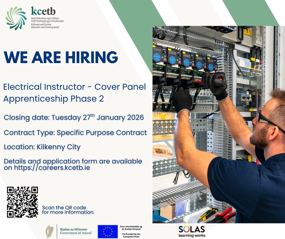 KCETB is inviting applications for an Electrical Instructor (Cover Panel) to deliver Apprenticeship Phase 2 training in Kilkenny City.