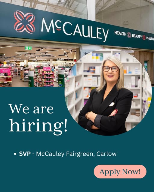McCauley Health & Beauty Pharmacy are searching for an experienced Supervising Pharmacist to join their McCauley Fairgreen Shopping Centre Team, in Carlow. This person will have the opportunity to work with a brilliant team in store and also become a part of the larger Uniphar Brand.
