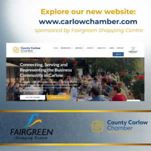 ‘County Carlow Chamber has been going from strength to strength – increasing our membership numbers, broadening our offering, collaborating with more partners and improving our range of services and events.’ Explains Chamber President, Norah Ryan. ‘As a result of all this activity, our website needs to work hard to ensure that everyone can find the information needed quickly and intuitively. We are delighted to partner with Fairgreen Shopping Centre on this initiative.’