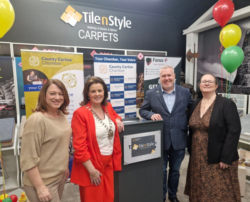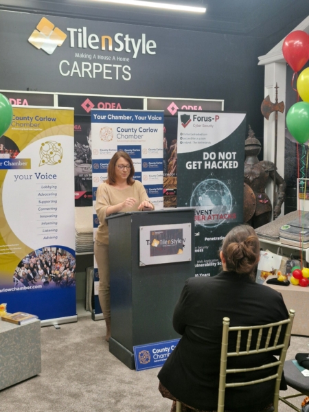 ‘It was great to see so many businesses at the event today in Tile N Style – networking is such a key component for every business. Thanks to Bernard and his team for hosting us – and for going to such trouble to make us all feel welcome. Well done to Eveline for giving a clear overview of the key issues that businesses need to consider – and for giving us all some practical next steps on strengthening our online security.’ Says Norah Ryan, President of County Carlow Chamber of Commerce.