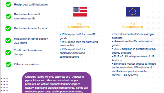 Attached is an update regarding the outcome on the recent EU/US trade talks. While plenty of details are yet to be published, this provides an objective snapshot of what has been announced by both the EU and the US.