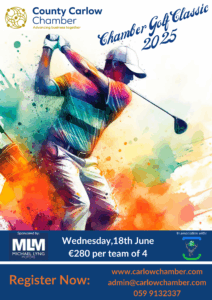 The County Carlow Chamber 2025 Golf Classic will take place on Wednesday 18th June 2023 at Carlow Golf Club.  We are delighted to say that Michael Lyng Motors Carlow will again sponsor the event.  We look forward to getting out on the course for some networking, fun and golf on this stunning parkland course.