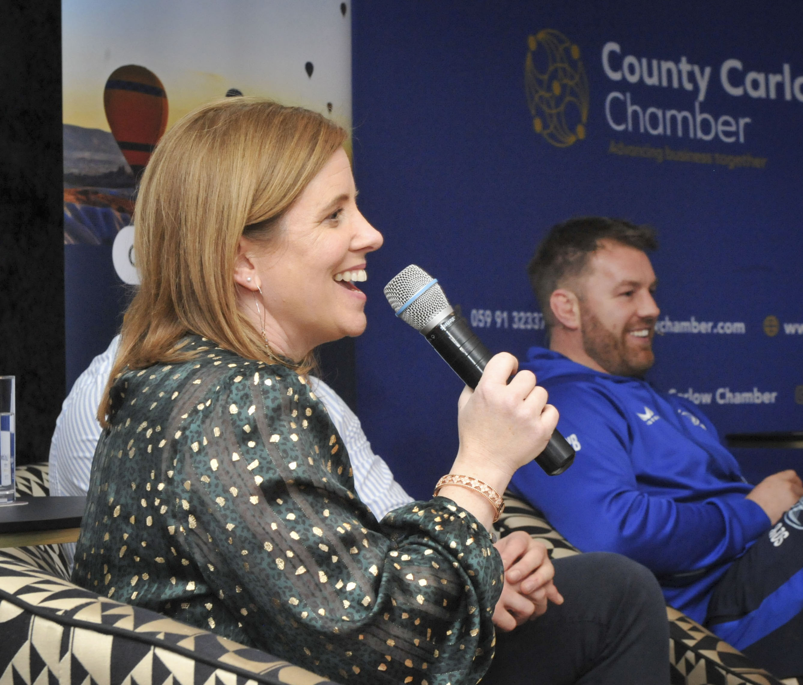 One of the highlights of this year’s event was a panel discussion with rugby legends Brent Pope and Sean O’Brien, and rising rugby star Stephen Smyth from Ballinabranna who has played on the U-20 Irish team, the Emerging Ireland team and the Leinster Team this year. Moderated by Carlow broadcaster and communications expert, Eimear Ni Bhraonain the panel discussed the topic of Leadership and Resilience – Lessons Learned On and Off the Pitch.