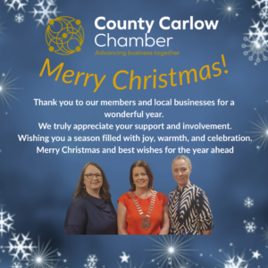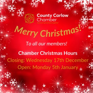 As the year draws to a close, we would like to take this opportunity to wish you a very Merry Christmas and a healthy, productive and prosperous New Year from all of the team in County Carlow Chamber of Commerce.